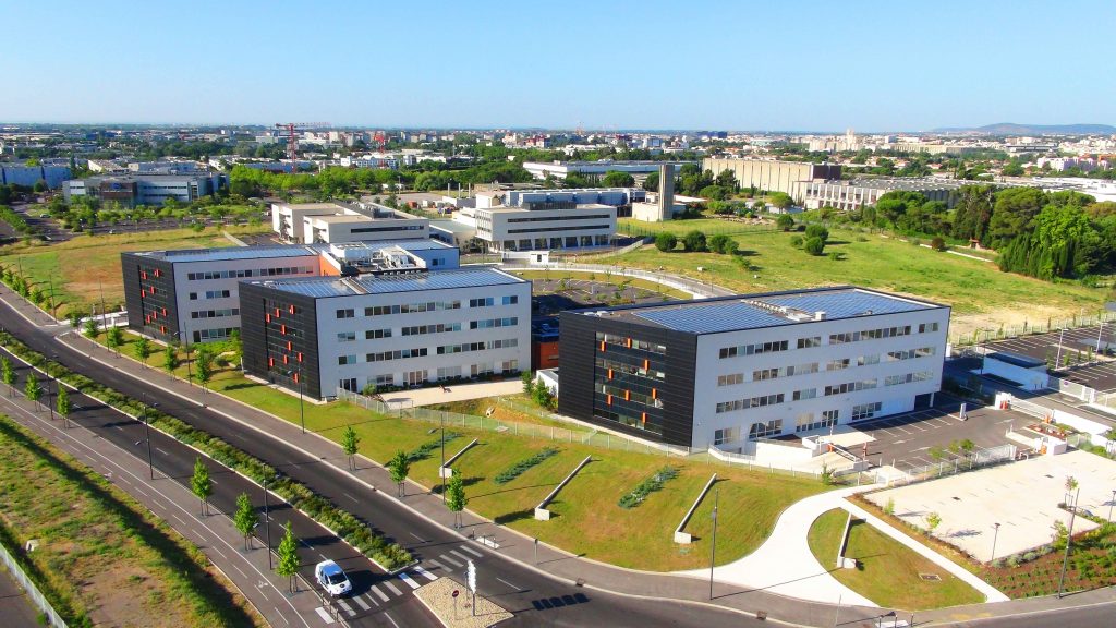 Campus de 3 bâtiments, cumulant une puissance photovoltaïque de 213 kWc répartie sur les trois toitures. Les centrales photovoltaïques des bâtiments A et B, mises en service en 2015, sont des centrales de première génération : en vente totale. La centrale en toiture du bâtiment C mise en service en 2017, est quant à elle une centrale de troisième génération. Elle est en autoconsommation sur les services généraux du bâtiment et alimente un système de stockage de froid innovent (GREENCORE). Les trois centrales produisent jusqu’à 259 MWh par an.