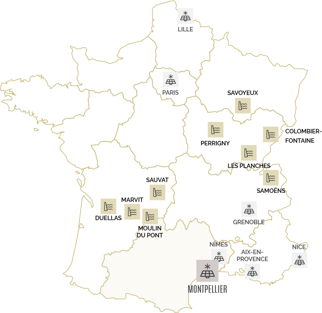 Installée au niveau du canal de dérivation de l’ancienne écluse au niveau des Chutes de Duellas, la centrale est le 1er projet hydraulique du groupe ARTEA, acquise en 2011. Elle a fait l’objet d’une rénovation entre 20012 et 2013. Dans le cadre de son acquisition, l’automatisme a été rénové afin d’améliorer les performances de la centrale.