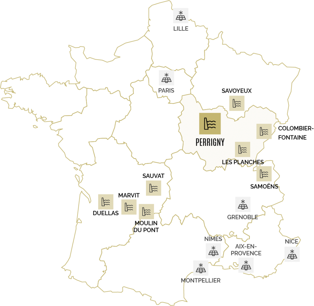 Acquise en 2015, la centrale de Perrigny est le 2nd projet hydraulique du groupe ARTEA. Elle relance la phase de croissance du groupe en hydroélectricité. Rénovée en 2010 dans la cadre des contrats d’obligation d’achat, ARTEA a fait le choix de rénover l’automatisation du site afin d’améliorer les performances de la centrale.