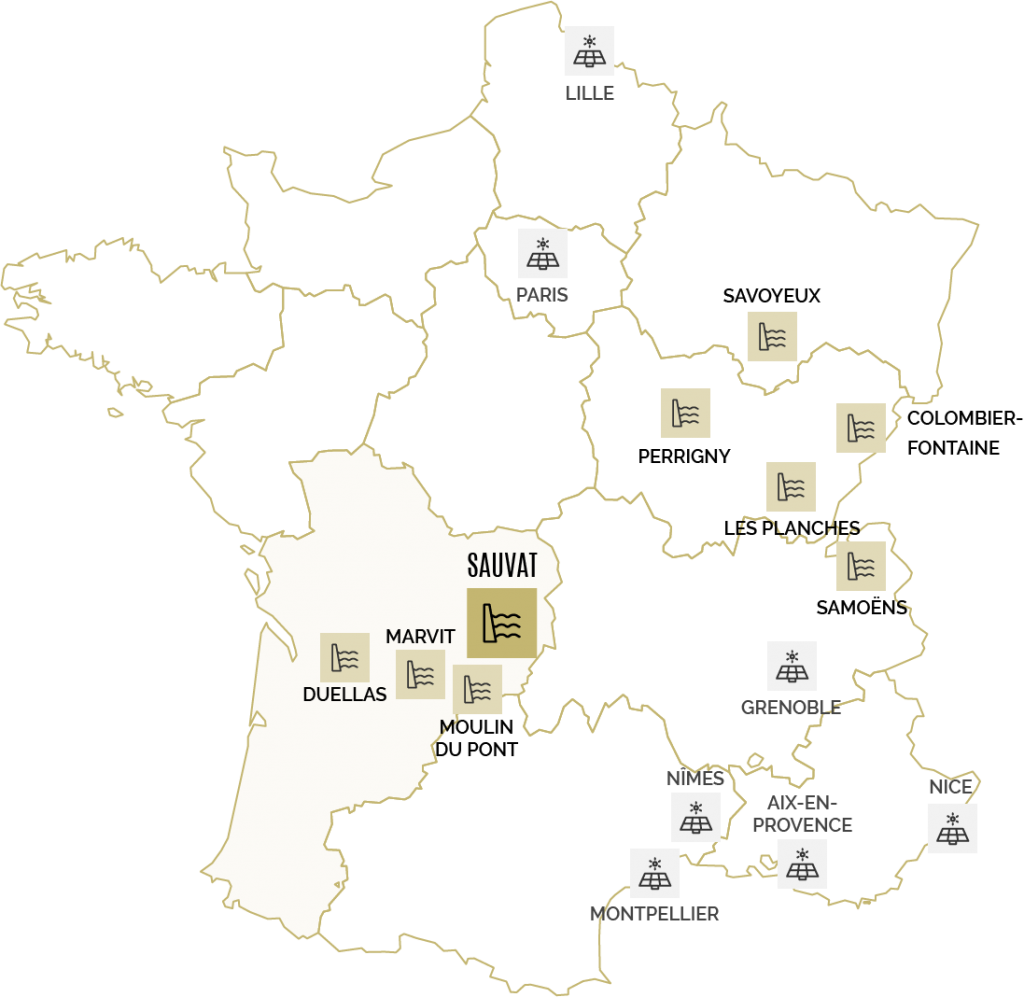 La centrale de Sauvat fut le 1er projet haute chute du groupe ARTEA. Elle s’inscrit également pleinement dans la stratégie d’ARTEA de fourniture d’énergie avec de l’électricité hors obligation d’achat. La centrale a été rénovée avec une seconde turbine de 400 kW permettant d’augmenter la puissance.