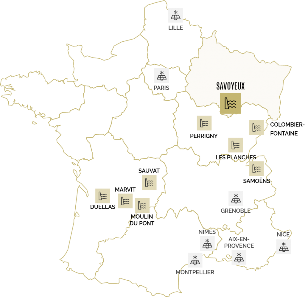 Installée au cœur d’une ancienne papeterie fermée en 1975, la centrale de Savoyeux a été acquise en 2015 par le groupe ARTEA. En 2017, deux turbines Kaplan Double réglages à entrainement direct ont été installées dans la centrale, de même que le remplacement de l’intégralité des équipements de production.