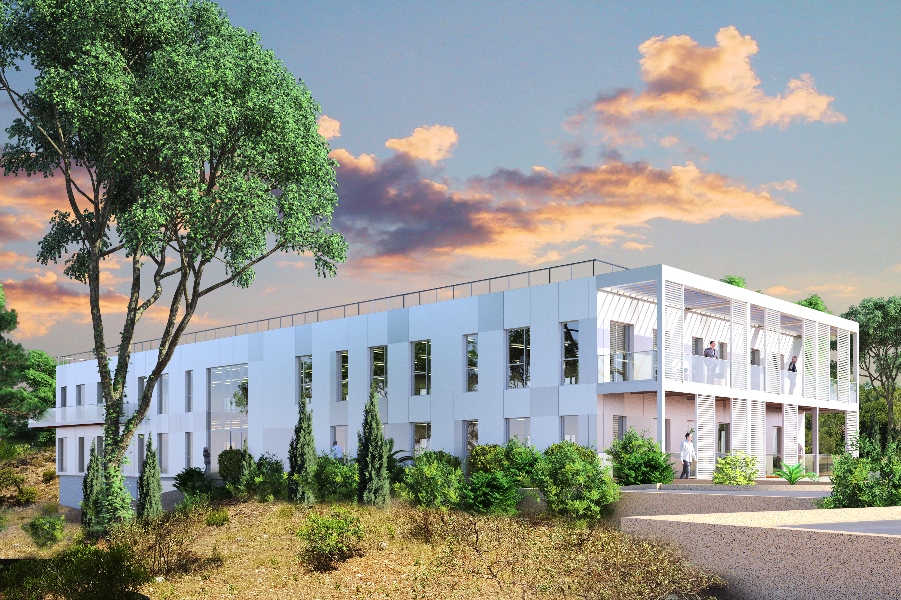 L’immeuble s’inscrit sur une parcelle d’environ 25 000 m², s’élève sur 3 niveaux au-dessus du sous-sol et se développe sur 5920 m² au total.