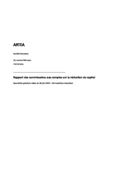 ARTEA Rapport réduction capital AGM -19e résolution signé collège