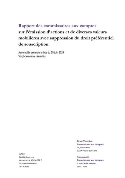 Rapport des commissaires aux comptes sur l’émission d’actions et de diverses valeurs mobilières avec suppression du dr