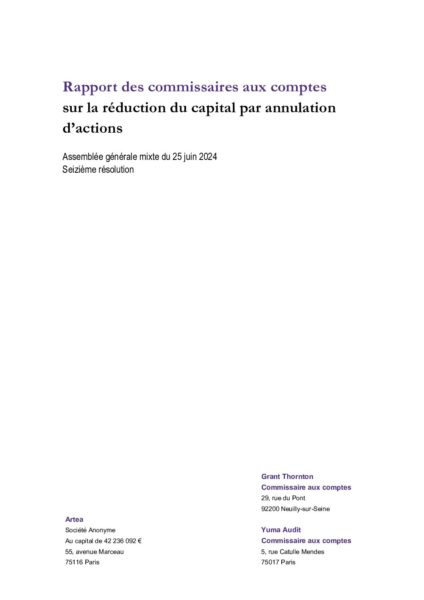 Rapport des Commissaires aux comptes sur la réduction du capital