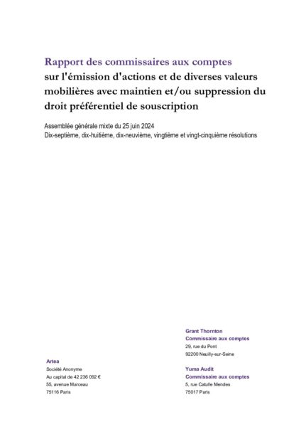 Rapport des commissaires aux comptes sur l’émission d’actions et de diverses valeurs mobilières avec maintien etou suppression du droit préf de souscrip